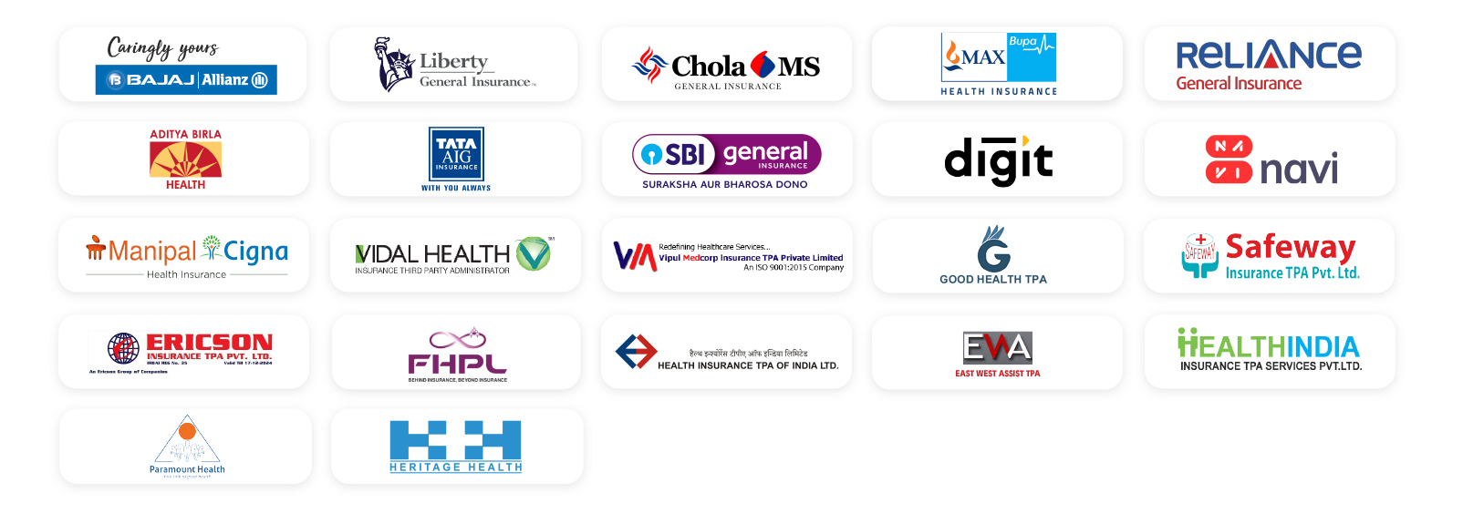 We are glad to announce that we have partnered with multiple insurance and TPA Companies. You can apply and avail cashless facilities from the below mentioned insurance companies and TPAs.